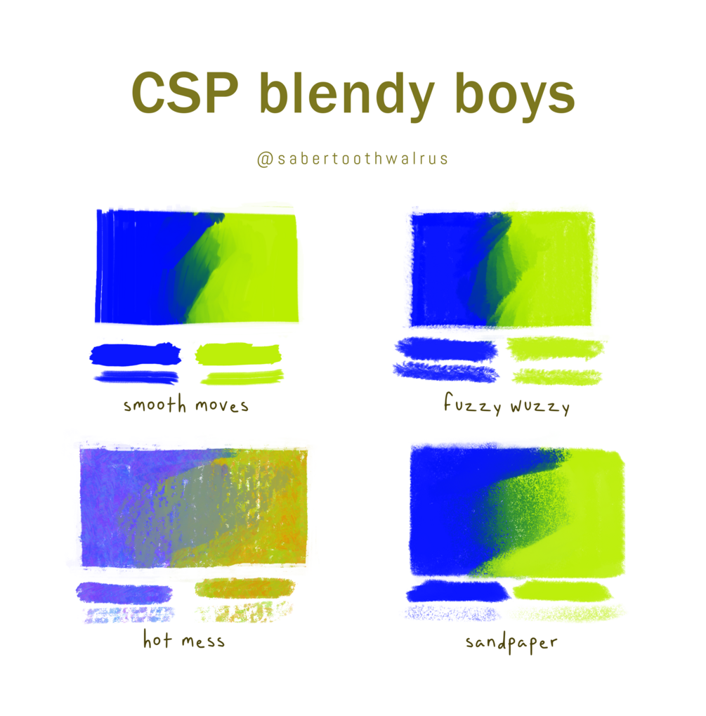 Four brushes for Clip Studio Paint. The textures were made by me by hand!